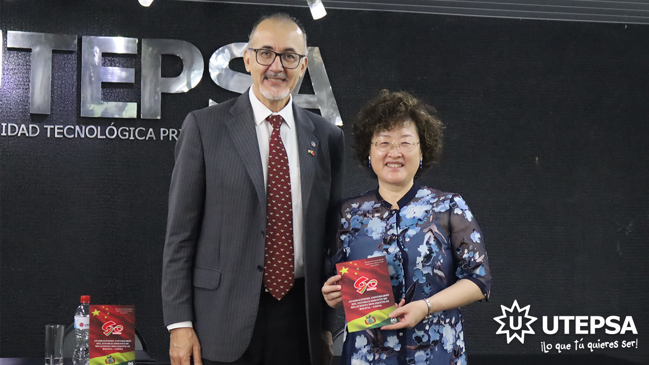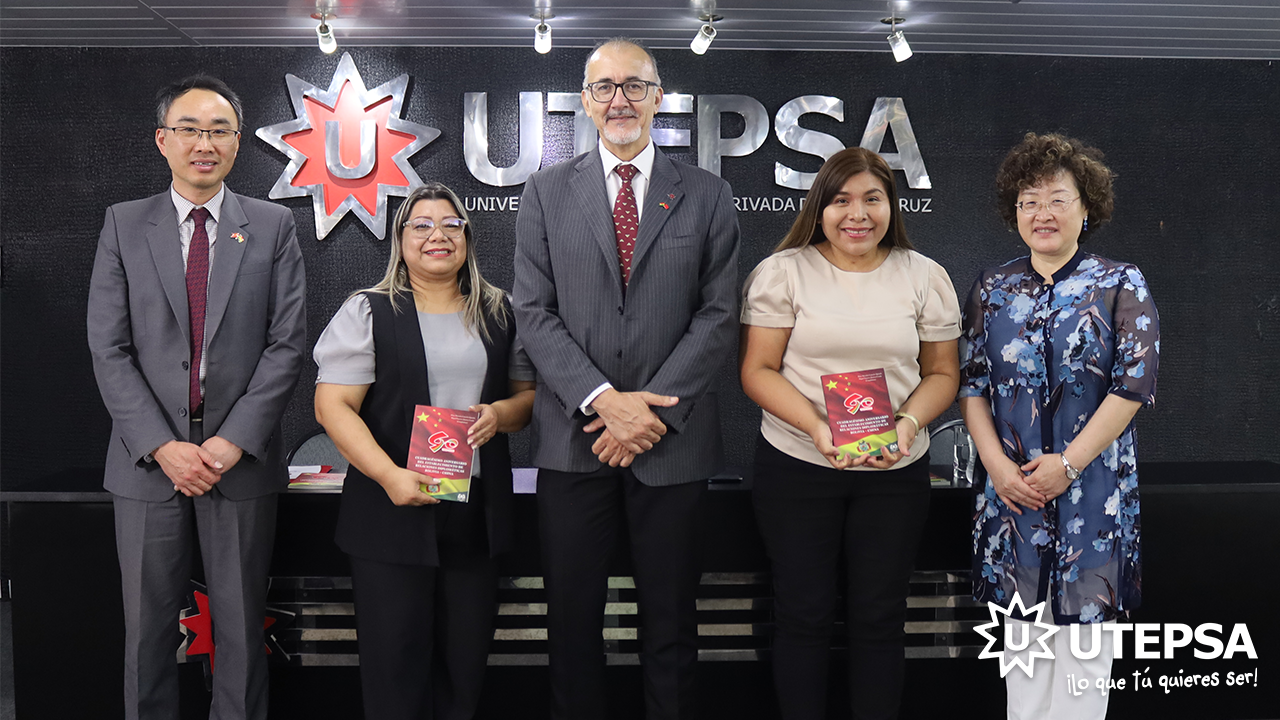 La ceremonia, celebrada en el Salón de Eventos de UTEPSA, contó con la presencia de autoridades universitarias, miembros de la Embajada de China en Bolivia, del Consulado General de China en Santa Cruz y la comunidad académica.