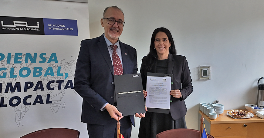 El acuerdo fue suscrito por el Rector de la Universidad Adolfo Ibáñez, Francisco José Covarrubias Porzio, junto a la Secretaria General, María José De Las Heras Val, y por nuestro Rector, Ing. Rubén Darío Dabdoub Azogue, en representación de ambas casas de estudio.