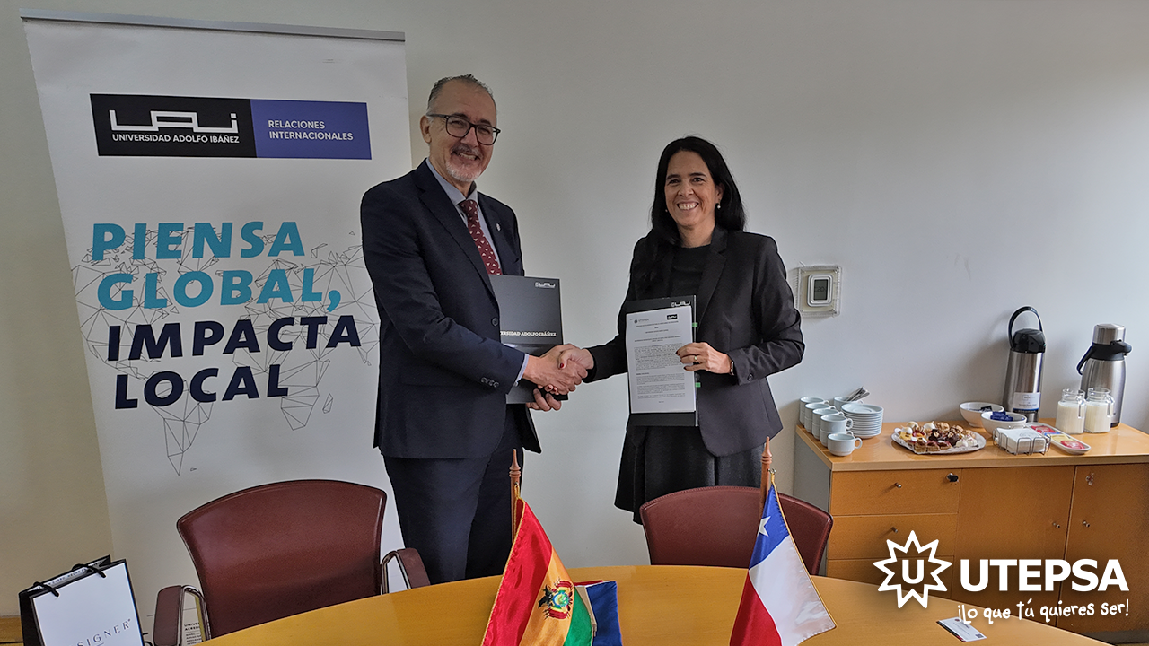 La Universidad Tecnológica Privada de Santa Cruz (UTEPSA) y la Universidad Adolfo Ibáñez (UAI) de Chile, reconocida por su excelencia académica y liderazgo en innovación educativa en América Latina, hemos firmado un Convenio Marco de Colaboración que fortalece los lazos entre ambas instituciones y abre nuevas oportunidades de cooperación internacional.
